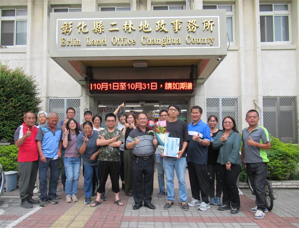 新聞焦點 二林地政事務所歡送蔡依芩、蔡青峰兩位同仁榮任新職 發布日期 2025/10/30~2026/10/30 | 發佈單位: 地政處地籍科 | 發佈日期: 柯麗鳳 分機1510 | 更新日期 2025/10/30 | 瀏覽人數: 84人 114年公務人員高等考試三級考試暨普通考試放榜,二林地政事務所測量課同仁再傳佳績。測量員蔡依芩小姐及測量助理蔡青峰先生雙雙錄取,分別分發至財政部國有財產署及臺南市玉井地政事務所服務,並於10月24日及10月27日離職前往新職報到。該所同仁特於所前廣場舉行歡送會,除表達誠摯的祝福外,也期勉兩位同仁在新的崗位上持續發光發熱。 蔡依芩小姐於服務期間,負責辦理土地複丈相關業務,工作態度認真負責,對待案件一絲不苟,深受長官肯定與同仁敬重。她以穩健的專業能力與親切的服務態度,為民眾留下良好印象,展現測量人員的專業形象。 蔡青峰先生則自到職以來,積極投入土地複丈與建物測量等外業工作,面對炎熱與風雨仍堅守崗位,展現出高度的責任感與敬業精神。其踏實肯學的態度,亦成為測量團隊中不可或缺的一員。 二林地政事務所劉主任表示,兩位同仁在任職期間皆兢兢業業、表現優異,不僅展現專業精神,更以真誠待人、合作融洽的態度贏得同仁與民眾的信任與讚賞。雖然離別令人不捨,但全體同仁都為他們的成就感到驕傲,並祝福未來在新職場一帆風順、再創高峰。 業務單位:彰化縣二林地政事務所 聯絡人:林小姐 電話:04-8964793#302