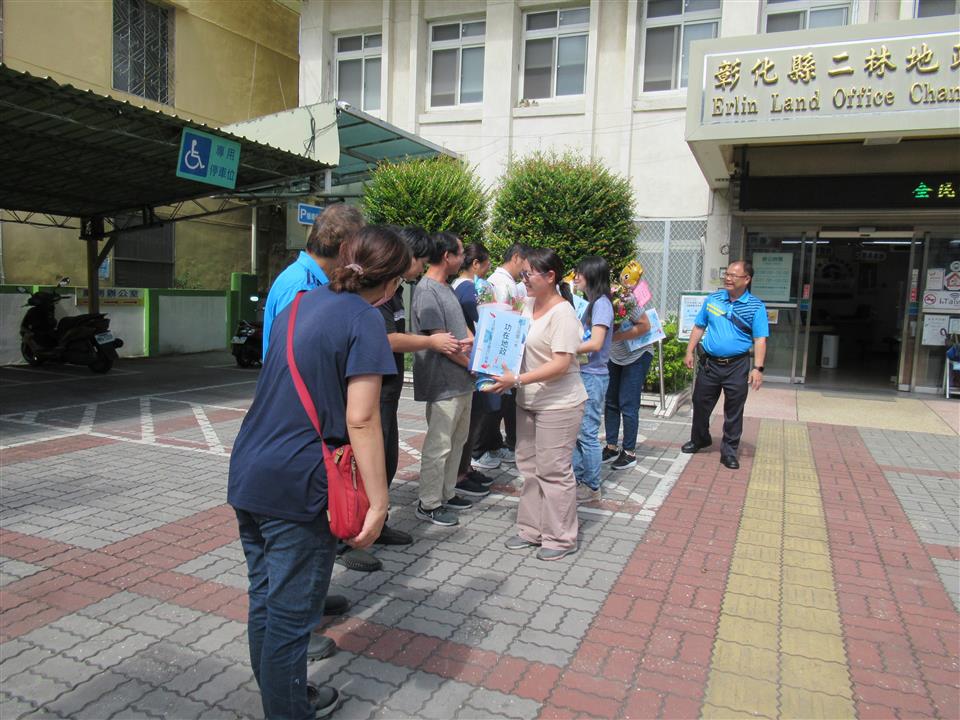 新聞焦點 二林地政事務所溫馨歡送三位優秀夥伴 發布日期 2025/10/30~2026/10/30 | 發佈單位: 地政處地籍科 | 發佈日期: 柯麗鳳 分機1510 | 更新日期 2025/10/30 | 瀏覽人數: 60人 114年公務人員高等考試三級考試放榜,二林地政事務所第二課三位同仁表現優異,順利錄取並分發至不同單位服務。測量員汪品萱小姐、技佐李祐瑄小姐及技佐林良郁小姐皆於10月30日離職,分別前往南投地政事務所、彰化地政事務所及埔里地政事務所報到。 三位同仁服務期間皆敬業盡責、表現優秀,不論是辦理土地複丈或建物測量業務,皆秉持專業精神與服務熱忱,深獲長官肯定與同仁讚譽。離別之際,全所同仁齊聚前廣場溫馨歡送,除感謝她們辛苦付出外,也祝福三位新職順利、前程似錦。 二林地政事務所劉主任表示,三位同仁在職期間不僅展現高度責任感與團隊精神,更以積極進取的態度為機關注入活力。雖離別令人不捨,但全體同仁都以她們的成就為榮,期盼未來能持續在地政領域發光發熱,延續「二林精神」。 業務單位:彰化縣二林地政事務所 聯絡人:林小姐 電話:04-8964793#302