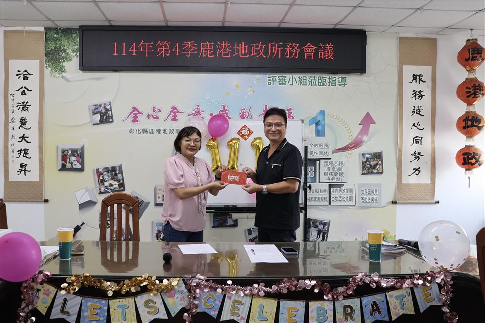 新聞焦點 歡慶地政節! 鹿港地政表揚績優同仁與退休祝福暖心登場 發布日期 2025/11/17~2026/11/17 | 發佈單位: 地政處地籍科 | 發佈日期: 柯麗鳳 分機1510 | 更新日期 2025/11/17 | 瀏覽人數: 12人 每年11月11日是地政人的重要日子—「地政節」,鹿港地政於今日召開本年度第4季所務會議,會中由各課課長報告登記、測量、地價等業務執行情形,並進行跨課室交流研討,藉此提升地所服務品質。同仁們也分享實務經驗與改善作法,展現專業與活力。 本次會議除報告例行業務、跨課室交流外,也表揚本年度業務評比中表現優異的同仁,鹿港地政在「地籍」及「農地重劃檔案管理」等項目表現亮眼。這份榮耀不僅屬於承辦同仁,更是整個團隊努力的成果,充分展現專業能力與服務品質。此外,本次會議也特別向即將於11月12日退休的同仁王珮玲小姐致上誠摯的祝福。珮玲在鹿港地政服務逾25年,深受長官與同仁愛戴。鹿港地政感謝她多年來的付出,並祝福她退休後悠閒自得。 會後舉辦地政節同樂活動,增進課室間情誼及組織凝聚力。鹿港地政何雪霞主任表示,地政節不僅是屬於地政人的節日,更象徵服務精神的傳承,期勉大家以績優同仁的專業與表現為標竿,持續精進服務,共同打造更精實、更友善的地政服務環境。 業務單位:彰化縣鹿港地政事務所 聯 絡 人:陳小姐 電 話:04-7771375分機6213
