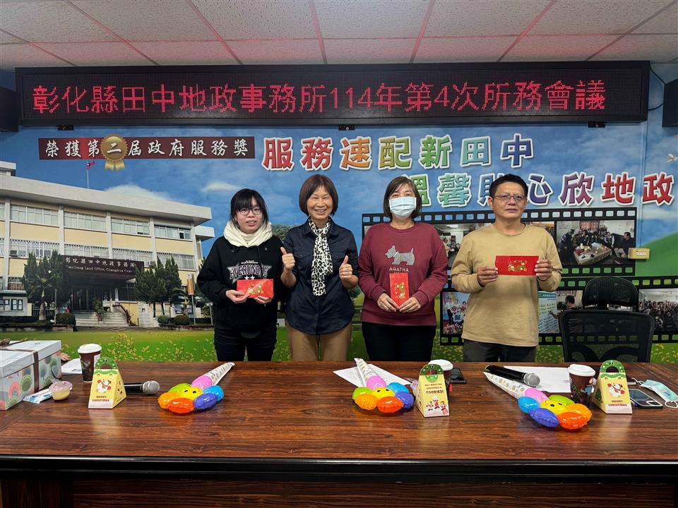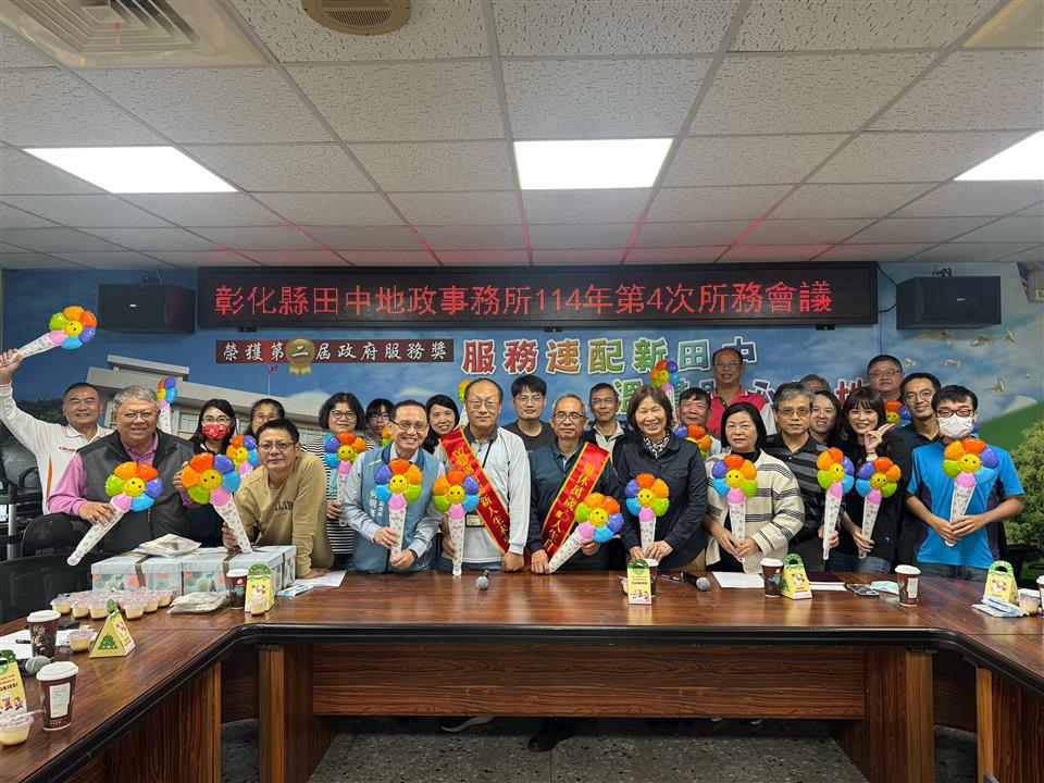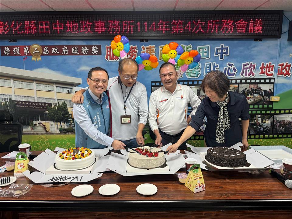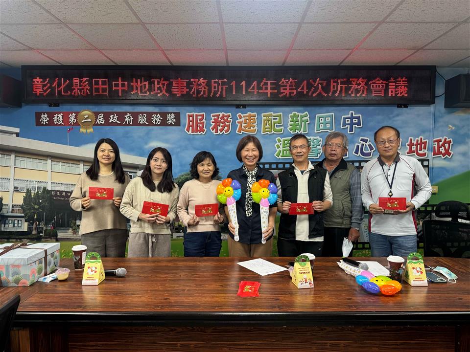 新聞焦點 田中地政辦理所務會議,歡送退休同仁及舉辦慶生會 發布日期 2025/12/17~2026/12/17 | 發佈單位: 地政處地籍科 | 發佈日期: 柯麗鳳 分機1510 | 更新日期 2025/12/17 | 瀏覽人數: 17人 為強化內部溝通協調,凝聚同仁向心力,田中地政事務所於12月15日召開114年度第4次所務會議,透過業務交流與意見分享,促進團隊互動,營造良好的工作氛圍。 本月適逢地價課蕭建源課長及陳建宏課員榮退,該所特別於會議前舉辦歡送活動,由縣府地政處何明修副處長代表縣長致贈紀念品,表達誠摯祝福,感謝兩位同仁多年來於地政工作上的辛勞付出與貢獻,並祝福其退休生活平安順心、多姿多采。另也安排同仁慶生會,為當月壽星獻上祝福,現場氣氛溫馨熱絡。會議中亦表揚該所優良服務人員及縣府地政業務考核特優人員,肯定同仁專業表現與服務熱忱,並鼓勵同仁踴躍提出建議,透過雙向溝通持續精進業務流程,提升整體服務品質,展現地政團隊專業、用心的服務精神。 田中地政事務所劉玉株主任表示,透過定期召開所務會議關懷同仁,辦理聚會活動,不僅有助於業務推動與經驗傳承,更能凝聚團隊向心力,未來將持續打造友善、和諧的職場環境,提供民眾更優質、便捷的地政服務。 業務單位:彰化縣田中地政事務所 聯 絡 人:過小姐 電 話:04-8742622