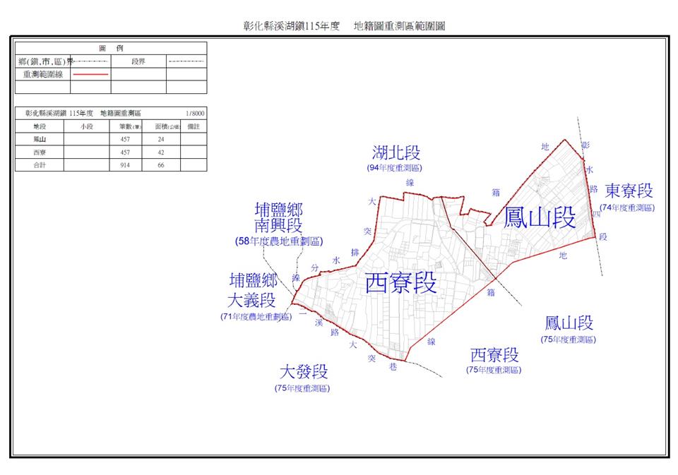 新聞焦點 溪湖地政115年度溪湖鎮地籍圖重測新地段初步命名出爐了 發布日期 2025/12/29~2026/12/29 | 發佈單位: 地政處地籍科 | 發佈日期: 胡尹瑄 7531513 | 更新日期 2025/12/29 | 瀏覽人數: 10人 為提升地籍測量精確性並保障土地所有權人財產權益,溪湖地政事務所115年度規劃於溪湖鎮鳳山段與西寮段辦理地籍圖重測,測區內土地總計914筆、面積66公頃,重測區範圍位於彰水路四段西側及大突巷之間,經與里長討論後,規劃沿用地區舊段名,將115年度地籍圖重測區域初步命名為「鳳西段」。 溪湖地政事務所於114年12月24日邀集重測區內東寮里里長、西寮里里長、大突里里長、彰化縣溪湖鎮公所及彰化縣政府等單位,共同於溪湖地政2樓會議室商洽新段名,並函送溪湖鎮公所同意備查後,預計1月中旬召開重測作業說明會,並於說明會中向土地所有權人宣布命名情形及重測相關業務,如無異議將依規定報請縣政府及內政部核備確認。 溪湖地政事務所黃麗卿主任表示,地籍圖重測為國家土地行政的百年大計,新地段名稱之命名依規定考慮天然界線及筆數後,以結合地方村名、舊段名、重要路名等原則方式命名,同時呼籲民眾務必配合重測指界作業,以確保自身權益,若對於地籍圖重測有任何疑義,可撥打電話04-8813119轉分機309洽詢,該所將指派專人詳予解說。 業務單位:溪湖地政事務所 聯 絡 人:楊坤龍 電 話:8813119#309