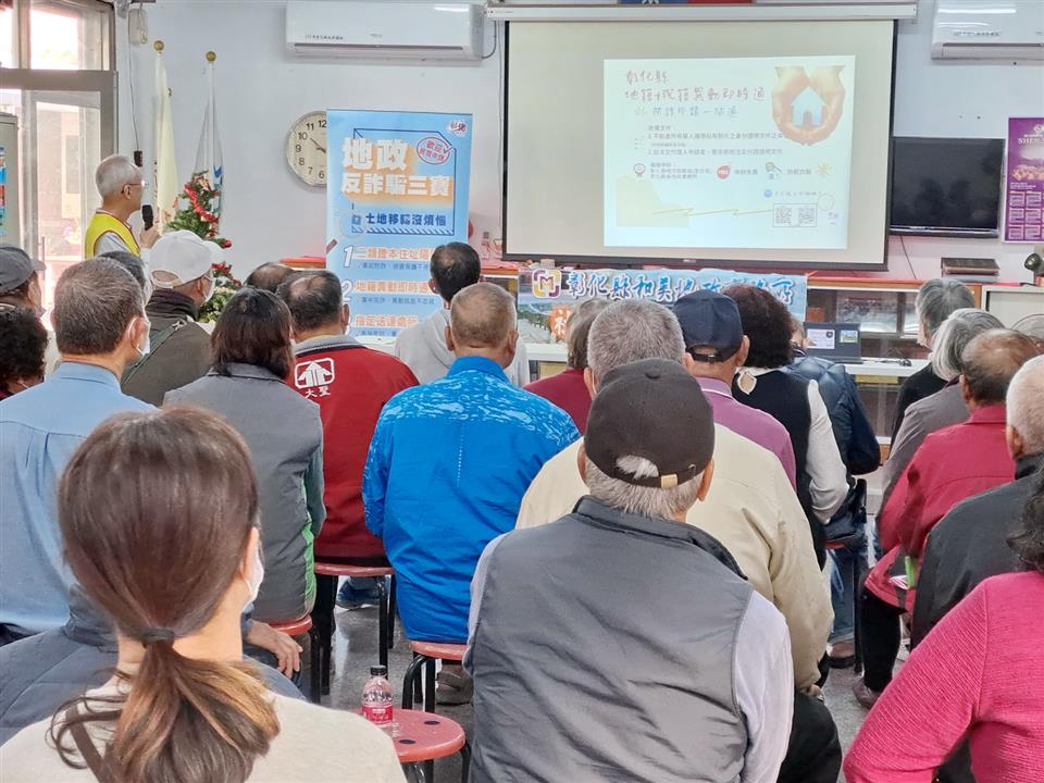 新聞焦點 伸港鄉泉厝社區—地政業務宣導 發布日期 2025/12/29~2026/12/29 | 發佈單位: 地政處地籍科 | 發佈日期: 胡尹瑄 7531513 | 更新日期 2025/12/29 | 瀏覽人數: 7人 和美地政事務所於114年12月24日上午至彰化縣伸港鄉泉厝社區活動中心舉辦社區服務及宣導地政業務,介紹地政事務所相關業務、推廣防詐地政三寶、宣講非都市土地使用管制之現行作法,並解答在場民眾提問共有土地分割、地價稅課徵事項。 在伸港鄉泉厝村洪勝賢村長廣邀村民之下,當日約有40位鄉親參與。和美地政事務所服務團隊特別介紹自114年12月15日起「地籍、稅籍異動即時通」申辦新措施,加強不動產權保障,推廣地政防詐三寶—地籍異動即時通、第二類謄本地址隱匿、指定公文書送達處所,透過家人親友的互相關心來遏阻詐騙,藉由這些措施,以多重保護的方式,協力保障自身產權。此外,就和美地政事務所行之有年的鑑界釘樁照片申請再予說明,請鄉親多加利用。另對於現行非都市土地使用管制之作法,從中央行政、監察單位的處理思維到民間團體的監督方式,目前運用衛星影像定期搜查土地變異點的科技執法,分享相關執行經驗,洪村長亦就親身參與外縣市拆除違規分享相關經歷。鄉親對於其所有土地、建物提出分割、地價稅課徵等問題,現場由和美地政事務所王建山主任逐一解惑。 和美地政事務所王建山主任表示,有鑑於詐騙事件層出不窮,因此將地政、稅務機關的阻詐措施介紹讓民眾知悉,提高民眾的防詐意識,並讓民眾對於土地使用管制的政府作為建立概念,期使和美地政事務所就權責執掌業務盡一份心力,並使各項業務及為民服務品質更加精進。 業務單位:和美地政事務所 聯 絡 人:林猷傑 電 話:7552217分機201