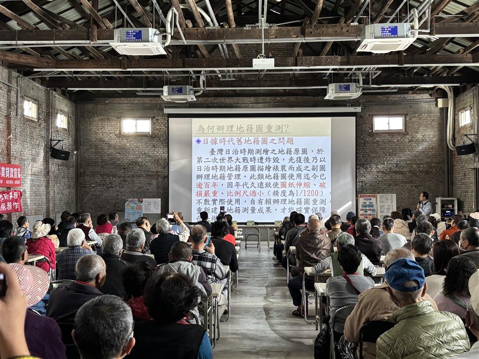 新聞焦點 115年度田尾鄉地籍圖重測宣導說明會圓滿結束 發布日期 2026/01/07~2027/01/07 | 發佈單位: 地政處地籍科 | 發佈日期: 柯麗鳳 分機1510 | 更新日期 2026/01/07 | 瀏覽人數: 21人 115年度田尾鄉地籍圖重測區計畫辦理範圍為溪子頂段十張犁小段、曾厝崙段、鎮平段,為讓重測區內土地所有權人了解115年度地籍圖重測工作的辦理目的與地籍調查及測量過程中應配合的注意相關事項,北斗地政事務所於114年12月29日上午10時,假彰化縣田尾鄉農會舉辦「115年度田尾鄉地籍圖重測宣導說明會」。 本次宣導說明會重點在於說明辦理田尾鄉地籍圖重測之必要性,並透過影片播放、有獎徵答及座談交流等多元方式,藉由土地所有權人詳細說明相關法令規定、土地所有權人應配合事項及應注意之重要資訊。北斗地政事務所詹主任於宣導會中說明,地籍圖重測不僅是確保土地界址與面積正確性的關鍵工作,更直接關係到土地所有權人的權益與未來發展。期盼透過本次宣導會,加深土地所有權人對地籍圖重測工作的理解與認識,並鼓勵大家踴躍參與和支持。詹主任並進一步提醒,土地所有權人於重測期間,應依地籍調查通知書所指定日期,親自或委託他人到場協助指界,並向重測人員清楚說明土地界址位置,以利重測作業依實際情況順利進行。同時也強調,地籍圖重測全程不收取任何費用,呼籲土地所有權人務必配合到場指界,以確保自身土地權益。 北斗地政事務所表示,「115年度田尾鄉地籍圖重測宣導說明會」在熱烈互動中圓滿落幕,感謝彰化縣政府地政處長官蒞臨指導,以及重測區內土地所有權人踴躍出席共襄盛舉。宣導會中,北斗地政事務所透過淺顯易懂的簡報與影片宣導,並與到場土地所有權人進行熱烈意見交流和討論,使土地所有權人充分瞭解地籍圖重測之目的與自身權益保障,達成良好宣導成效。 業務單位:彰化縣北斗地政事務所 聯 絡 人:吳先生 電 話:04-8882034轉203