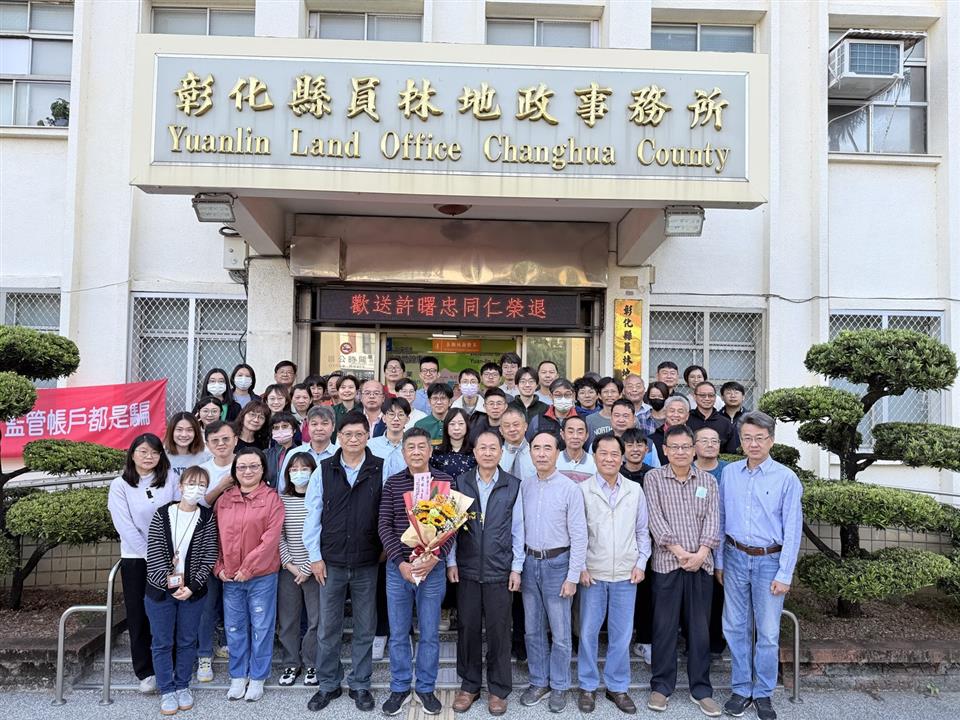 新聞焦點 員林地政測量同仁許曙忠先生榮退,同仁獻上祝福 歷史訊息 | 發布日期 2026/01/20~2026/01/20 | 發佈單位: 地政處 | 發佈日期: 柯麗鳳 分機1510 | 更新日期 2026/01/20 | 瀏覽人數: 4人 員林地政事務所二課資深測量人員許曙忠先生於115年1月16日屆齡退休,地所特別於退休前舉辦榮退歡送會,由地政處陳麗梅處長親自到場頒獎致意,並與地所同仁一同獻上祝福贈送紀念品及合影,感謝許曙忠先生多年來在地政機關服務,對測量業務之專業貢獻深受肯定,退休當日地所全體同仁也紛紛獻上祝福與歡送,場面溫馨熱絡。 許曙忠先生自民國80年1月至員林地政事務所服務,至今已投身地政業務35年餘年,擁有相當豐富的測量實務經驗,舉凡地籍圖重測、重測調查、重劃分配等重大政策工作,皆秉持專業,對於地政業務有許多的貢獻,除了在專業領域表現卓越外,曙忠平時幽默、樂觀,與同事之間的感情相當融洽,在繁忙的工作中,總是能提供達觀的態度,讓同仁們有愉快的工作氛圍,深受同事們的敬重,對於曙忠的退休,同仁們相當不捨,但衷心祝福。 員林地政事務所蘇添旺主任由衷感謝許曙忠先生的付出及貢獻,祝福曙忠退休後在人生旅程另一階段更能心想事成、平安健康,享受退休新生活。 業務單位:員林地政事務所 聯 絡 人:余小姐 電 話:8320310#214