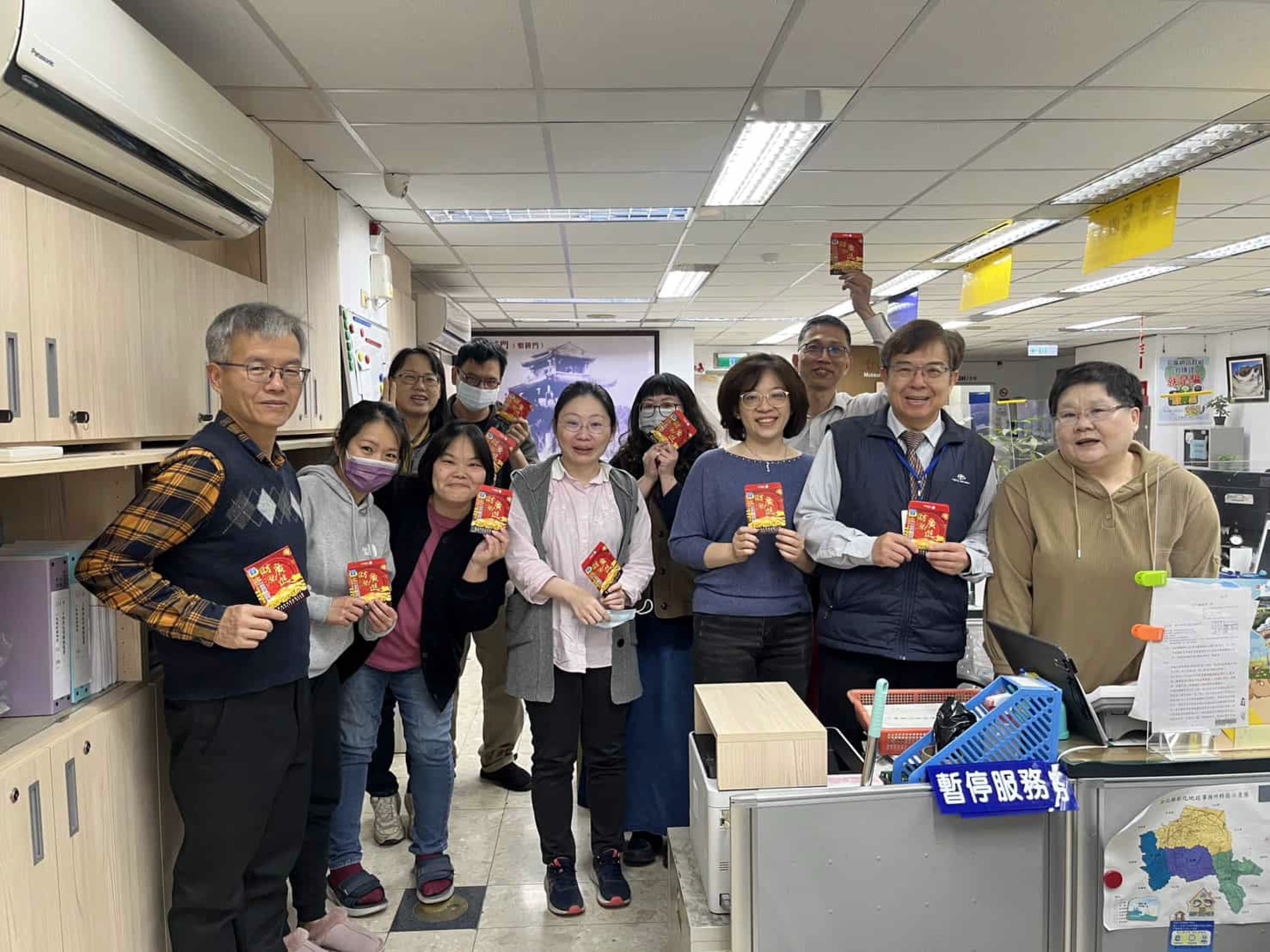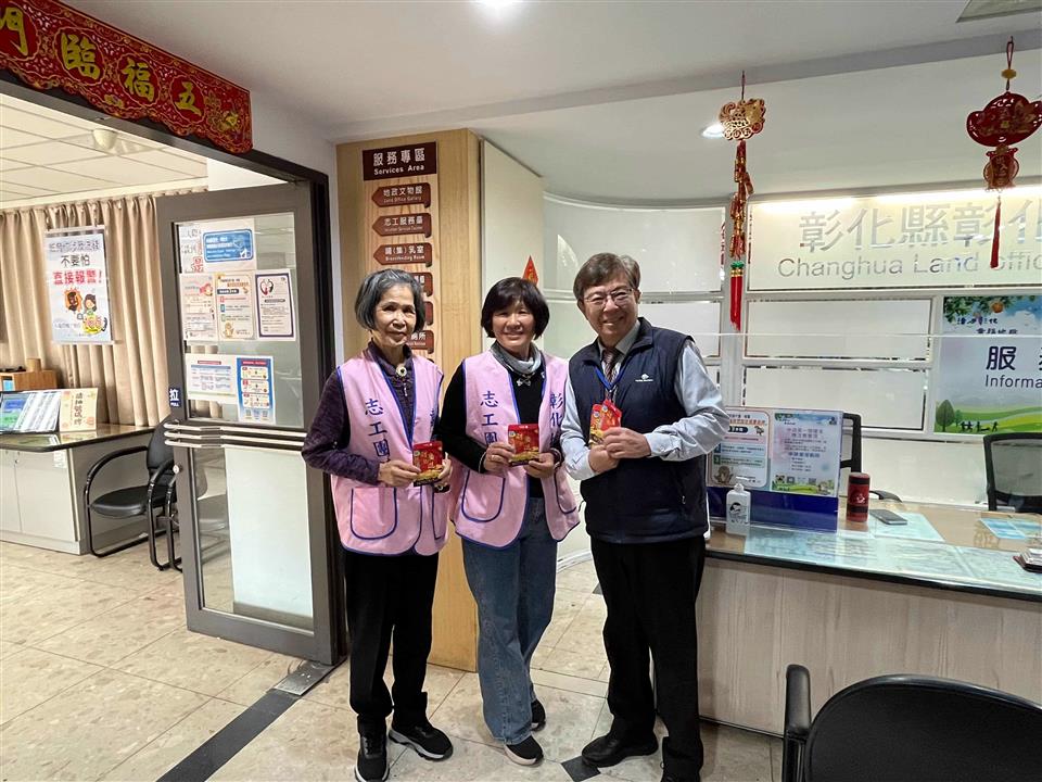 新聞焦點 彰化地政主任暖心送公益,同仁歡喜迎新年 發布日期 2026/02/13~2027/02/13 | 發佈單位: 地政處地籍科 | 發佈日期: 柯麗鳳 分機1510 | 更新日期 2026/02/13 | 瀏覽人數: 4人 為迎接新春佳節,彰化地政事務所陳易宏主任特別自費購買公益彩券,將滿滿的祝福與心意分送給全體同仁,以實際行動支持公益、傳遞溫暖。主任表示,購買公益彩券不僅為社會弱勢盡一份心力,也希望透過這份小小心意,讓同仁在歲末年終感受到單位的關懷與祝福。 過去一年同仁們在各自崗位上盡心盡力、辛勤付出,為機關業務推動奠定穩固基礎。藉由新春前夕分享公益彩券,不僅象徵好運與希望,更期盼新的一年大家都能順心如意、闔家平安,在工作與生活上皆有豐碩收穫。 同時,主任也特別提醒同仁,春節連假期間無論返鄉或出遊,務必注意交通安全與自身健康,做好各項安全防護措施,並祝福大家新春愉快、心想事成、馬年行大運,共同迎接嶄新且充滿希望的一年。 業務單位:彰化縣彰化地政事務所 聯 絡 人:張小姐 電 話:7222612#410