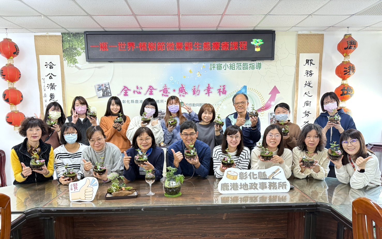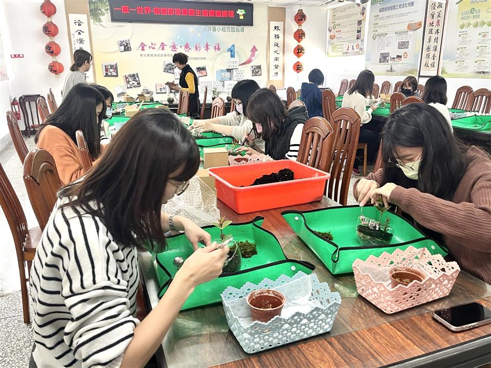 新聞焦點 鹿港地政舉辦一瓶一世界植樹節微景觀生態療癒課程 發布日期 2026/03/17~2027/03/16 | 發佈單位: 地政處地籍科 | 發佈日期: 柯麗鳳 分機1510 | 更新日期 2026/03/17 | 瀏覽人數: 10人 在忙碌公務節奏中,為同仁按下暫停鍵!鹿港地政於植樹節辦理「一瓶一世界,植樹節微景觀生態療癒課程」,以手作生態瓶為主題,讓同仁在綠意環繞中放鬆心情、療癒身心,為工作注入滿滿正能量。 課程中由講師介紹微景觀生態瓶的設計概念與植物特性,帶領同仁從鋪設土壤基底、挑選植栽到搭配裝飾小物,逐步完成層次豐富的小型生態景觀。透明瓶內一景一世界,每個人依自己的想法配置植物與擺設,創作出各具特色的療癒小天地。活動過程氣氛輕鬆愉快,同仁彼此交流創意與作品,在專注與互動中感受手作的樂趣,也在綠意陪伴下舒緩身心壓力。 鹿港地政何雪霞主任表示,植樹節象徵希望與成長,透過微景觀生態課程,不僅讓同仁親近自然,也藉由手作過程培養耐心與專注,達到放鬆與療癒效果。一瓶一世界,種下的不只是植物,更是平衡與療癒。讓綠意陪伴,讓能量發芽,為團隊注入更多活力與正能量。 業務單位:彰化縣鹿港地政事務所 聯絡人: 劉小姐 電話:04-7771375轉6207