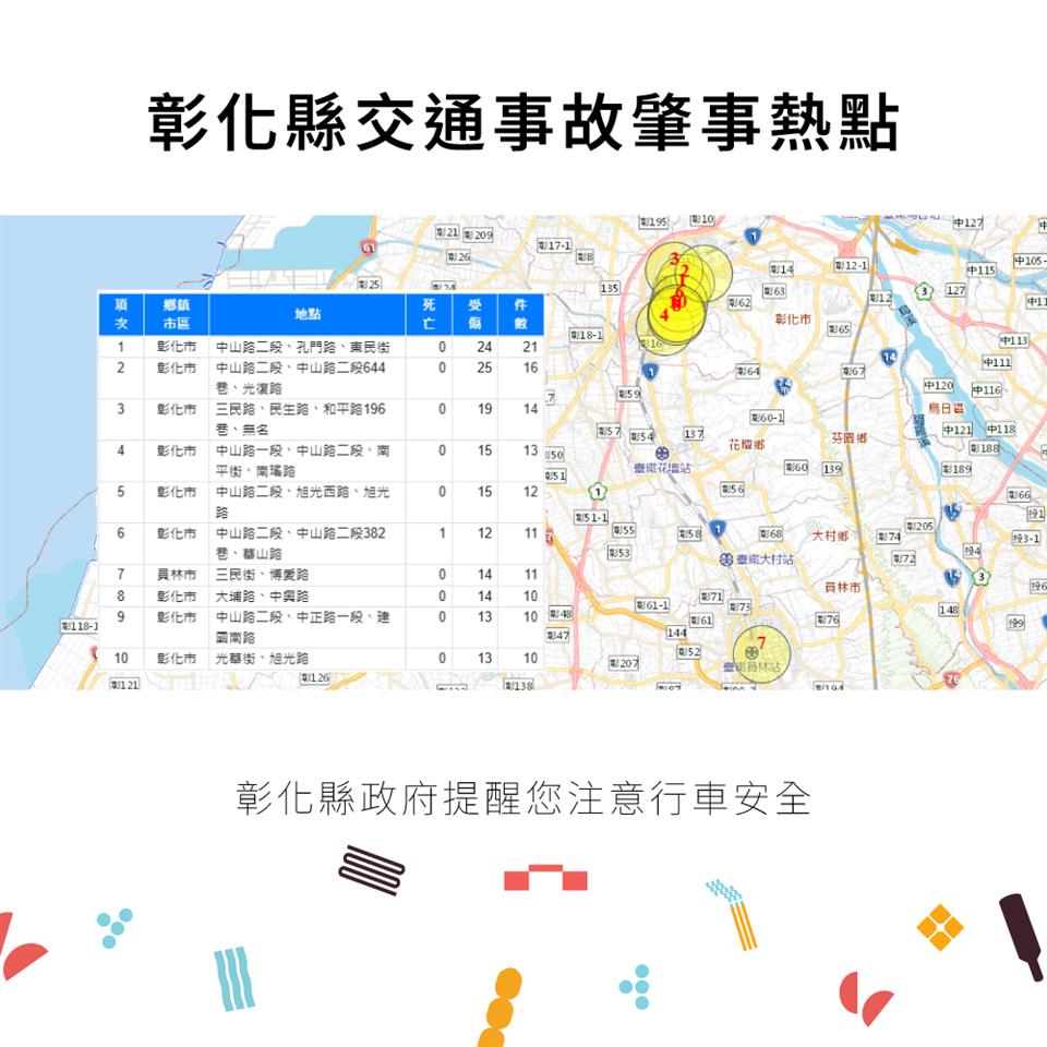 公告資訊 彰化縣114年1-6月道路交通事故死傷累計15,648人 發布日期 2025/09/25~2025/10/25 | 發佈單位: 地政處 | 發佈日期: 陳翊倫 7531515分機1515 | 更新日期 2025/09/25 | 瀏覽人數: 26人 🟣 騎自行車請遵守交通規則,才能平安下車囉! 🟣 Stop and Yield at Uncontrolled Intersections to Keep You Safe. 🟣 看到停止標線,請減速停讓,確定無人車再通過。