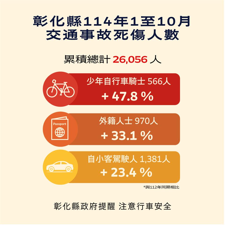 公告資訊 114年1-10月道路交通事故死傷累計26,056人 發布日期 2026/01/27~2026/02/27 | 發佈單位: 地政處 | 發佈日期: 陳翊倫 7531515分機1515 | 更新日期 2026/01/27 | 瀏覽人數: 29人 🟣分心一秒鐘,危險跟著衝,左轉照規矩,回家不悲劇。 🟣閃光紅燈 停車再開。FLASHING RED: STOP & YIELD 🟣轉彎停一停,平安跟著行,路口不搶快,停讓最安心!